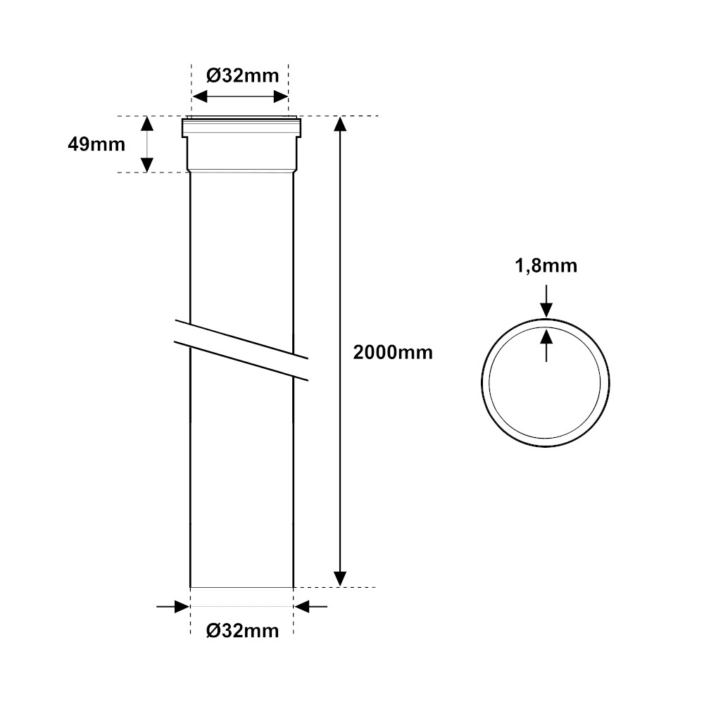 Il sistema in polipropilene grigio ad innesto è utilizzato per la realizzazione di impianti di scarico, drenaggio, ventilazione e trattamento delle acque reflue. Il tubo presenta un attacco maschio con diametro Ø32mm da un lato, e un attacco femmina con diametro Ø32mm dall’altro. Il tubo ha una lunghezza di 2000mm. Il raccordo sfrutta il sistema a bicchiere con guarnizione idraulica, il quale sistema garantisce una solida tenuta senza perdite. Inoltre questo sistema previene le dilatazioni dovute alle variazioni della temperatura.