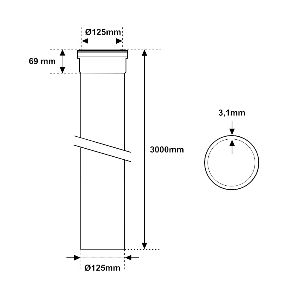Tubo 1 Bicchiere PP Grigio Ad Innesto MF Ø125mm L 3000mm