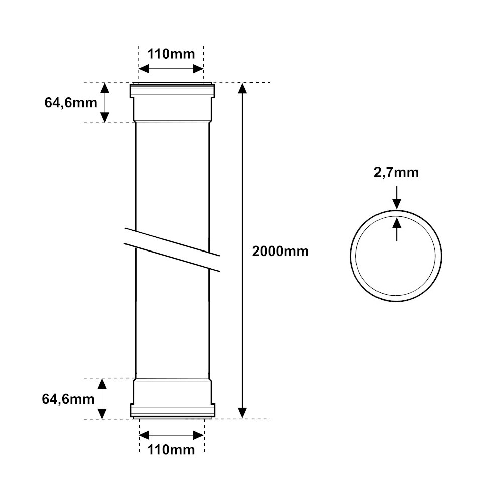 Il sistema in polipropilene grigio ad innesto è utilizzato per la realizzazione di impianti di scarico, drenaggio, ventilazione e trattamento di acque reflue. Il tubo ha una lunghezza di 2000mm ed una struttura a 2 bicchieri. Inoltre il tubo possiede due attacchi femmina con diametro FF Ø110mm. Il raccordo sfrutta il sistema a bicchiere con guarnizione idraulica, il quale sistema garantisce una solida tenuta senza perdite. Inoltre questo sistema previene le dilatazioni dovute alle variazioni della temperatura.