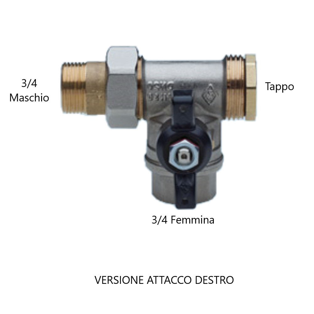 Valvola a sfera a squadro per collettori 3/4 RB