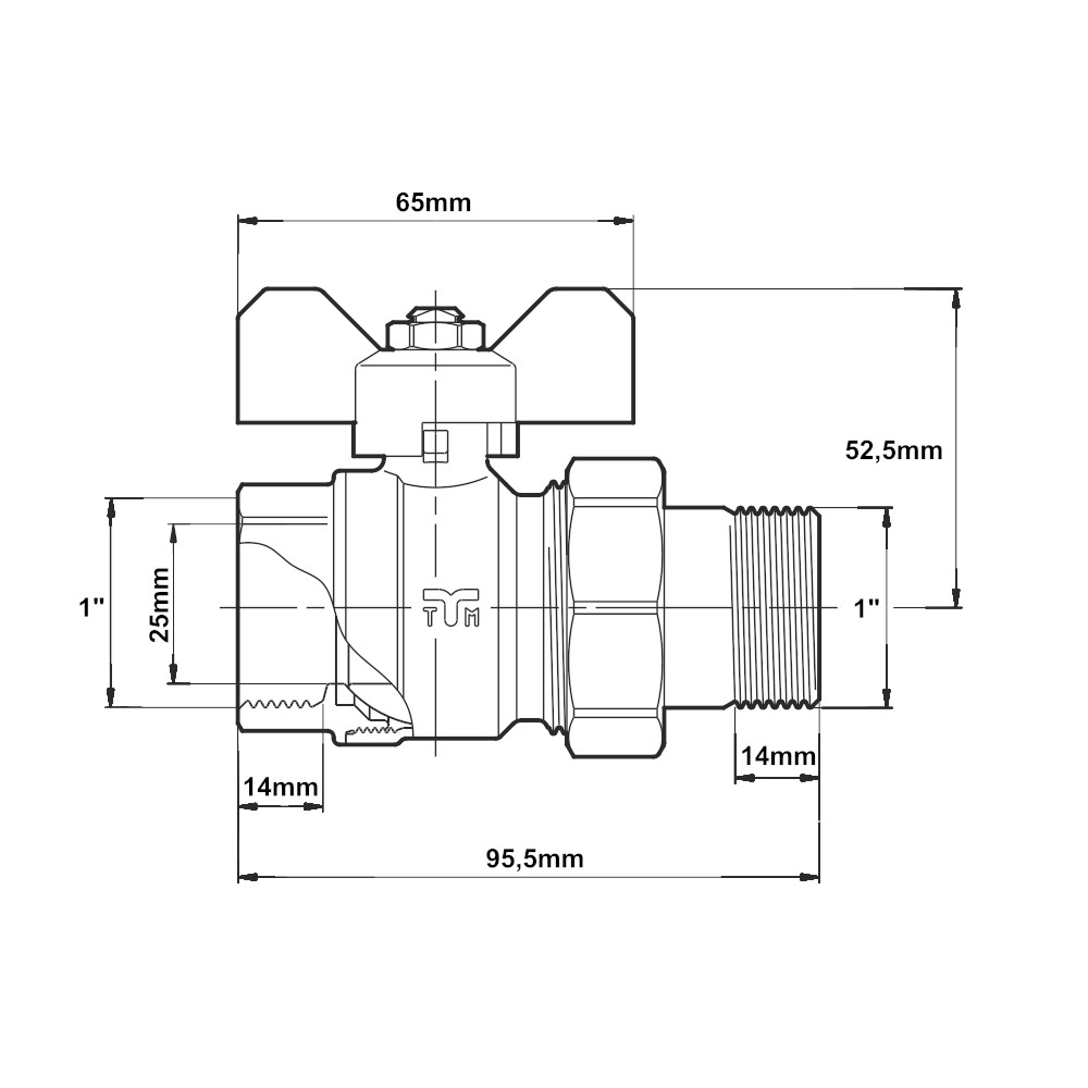Valvola a sfera con bocchettone 1″ MF con leva a farfalla