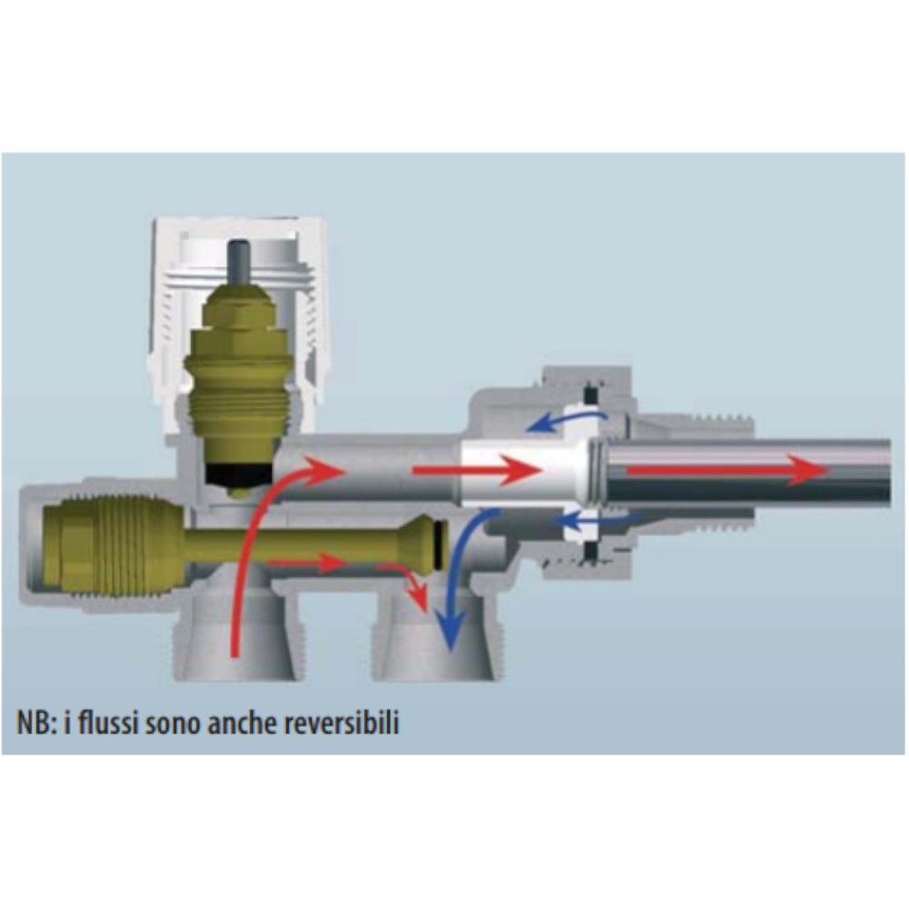 La valvola bitubo termostatizzabile della Far con un diametro da mezzo pollice che permette una regolazione di tipo manuale, o di tipo termostatica oppure elettrotermica. La valvola è utilizzata su circuiti con mandata di andata e ritorno, con la possibilità d’impiego reversibile solo nel caso in cui la si utilizzi manualmente. La valvola è composta da un volantino da due attacchi 24×19 per tubo rame, plastica e multistrato, e tramite sonda metallica al radiatore. Per collegare i tubi ai due attacchi da 24×19 bisogna seguire il senso delle frecce che sono impresse sul raccordo.