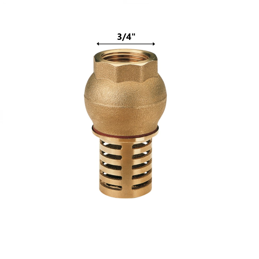 La valvola di fondo è a funzionamento unidirezionale, permette cioè di evitare il ritorno del fluido in pressione. Consentendo il filtraggio del fluido nel quale è immersa, trova naturale impiego negli impianti di aspirazione di acqua calda e fredda da pozzi o accumuli e da impianti idrici in genere. Tale valvola può essere installata solo verticalmente in quanto la chiusura dell’otturatore è comandata dalla forza gravitazionale. Corpo e filtro in ottone, guarnizione del filtro in fibra, tenuta in ottone e guarnizione in NBR. Attacco filettato F Ø 3/4″.