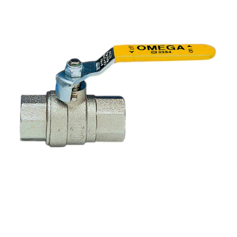 La valvola a sfera per il passaggio totale gas marchiato con sigillo OMEGA è realizzata con materiale in ottone stampato, ed ha alle estremità attacchi filettati femmina femmina (ISO 228/1), mentre le sue misure sono di 2”1/2 ( due pollici e mezzo ), è predisposta sulla parte superiore una leva in acciaio gialla nichelata usata come saracinesca per aprire o chiudere il passaggio del gas. La valvola può essere installata e usata su svariati tipi di impianti per gas a combustibile, come gas metano, gas di città e gas liquidi. La saracinesca a sfera della serie Omega comunque sono anche adatte per l’uso degli impianti con il passaggio di acqua calda e fredda, aria compressa, olii e idrocarburi in generale.