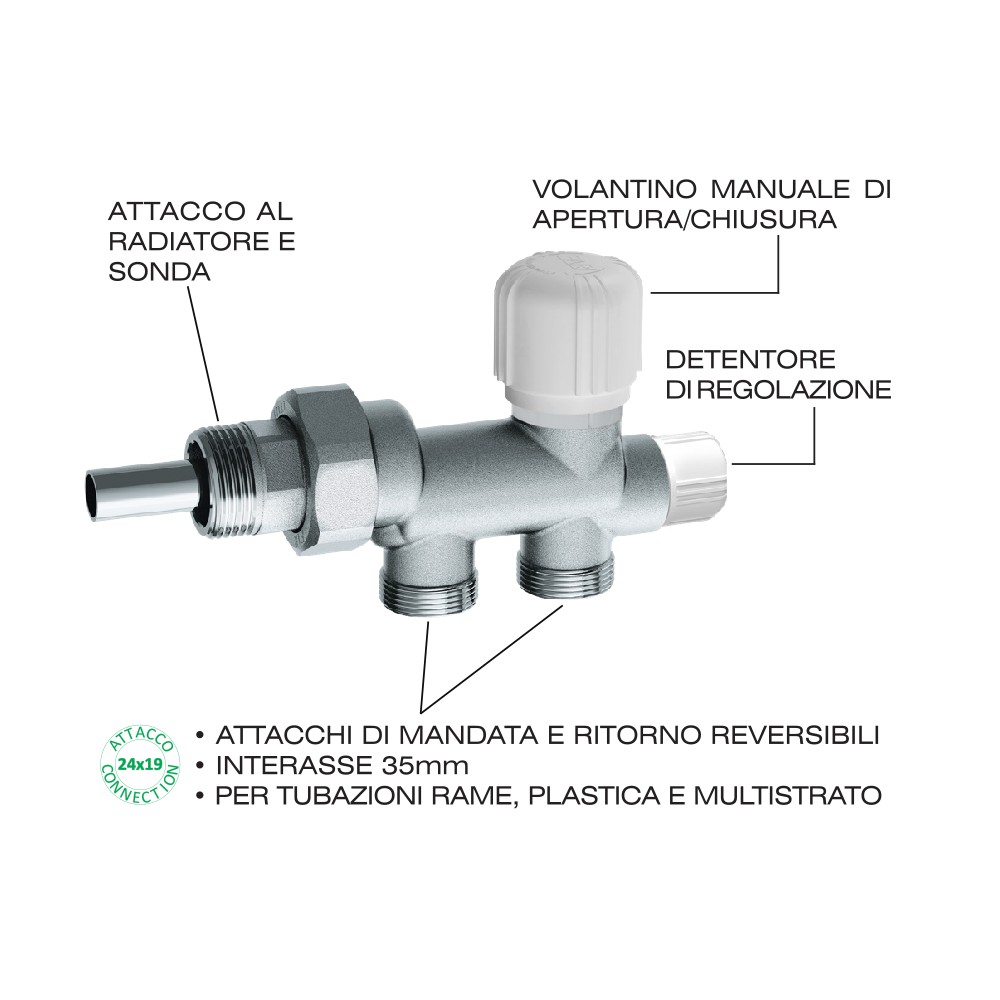 Valvola monotubo termostatizzabile Ø 1″ Sinistra FAR