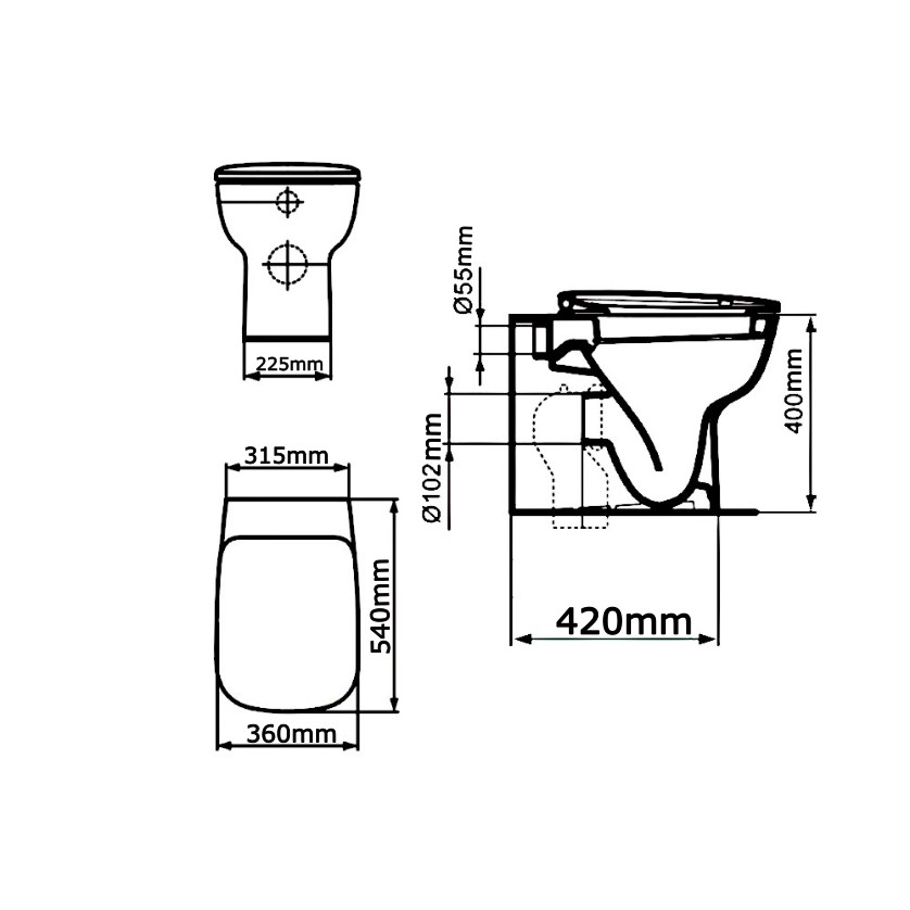 Progettato per essere installato a pavimento e aderente alla parete, questo modello Wc ottimizza lo spazio disponibile senza lasciare spazi vuoti dietro.