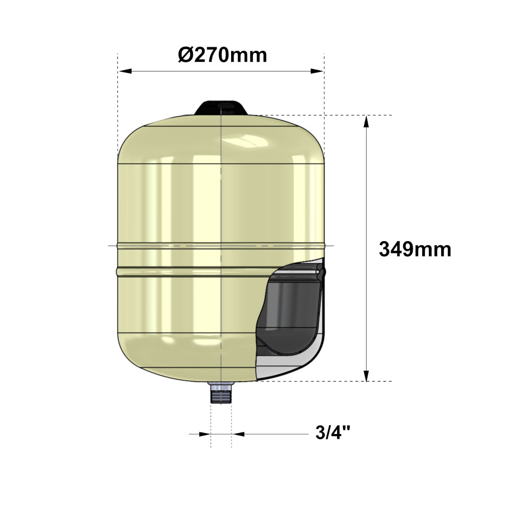 Il vaso Hydro-Plus da 18 litri ha una forma cilindrica allungata ed evita qualsiasi ristagno di acqua e di conseguenza la crescita batteriologica. Il rivestimento esterno con vernice a polvere epossi-poliestere garantisce una lunga durata ed una protezione ottimale contro gli agenti atmosferici. Le saldature in MIG eliminano qualsiasi spigolo o forma tagliente all’interno del serbatoio. La membrana, progettata in butile, contribuisce ad eliminare eventuali sedimenti e la proliferazione di batteri mantenendo l’acqua pulita e sicura. Il sistema è fornito di un raccordo da 3/4″ G in acciaio inox, per una massima resistenza contro la corrosione e di una valvola di precarica con protezione da 2,5bar. Inoltre, è adatto ad essere usato con bollitori elettropompe e come anticolpo d’ariete. La temperatura massima del sistema è di 10°C/ +99°C e la pressione massima di 10bar.