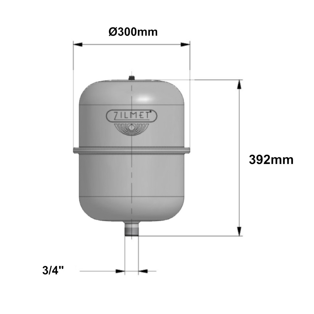 Il vaso presenta una struttura completamente saldata, realizzato in acciaio al carbonio, perciò particolarmente resistente ed utilizzabile fino ad una pressione massima di 10 bar. La sua rivestitura esterna è strutturata con vernici epossi-poliestere, in questo caso in colorazione bianca. Il vaso di espansione, deve garantire che l’impianto possa funzionare in modo sicuro anche nel caso in cui l’impatto stesso si trovi in fase di riposo. Le temperature, in fase di inattività, raggiungono picchi di 200°C. Per sopportare questa fase, Zilmet ha sviluppato la membrana Zilan per i vasi di espansione SolarPlus. La membrana è appositamente pensata per sistemi solari, la quale separa il lato d’aria dal lato contente il liquido solare. Realizzata in gomma sintetica, vanta un’elevata resistenza alle alte temperature e può essere utilizzata fino a 100°C. E’ resistente a miscele contenenti glicole etilenico o glicole propilenico ed ha una permeabilità particolarmente ridotta. In aggiunta è certificata secondo la normativa DIN 4807-3. Il vaso di espansione a membrana assicura che la pressione dell’impianto rimanga costante. Il vaso SolarPlus 25 ha una capacità di 25 litri, una pressione massima di esercizio di 10 bar, una temperatura di esercizio del sistema Min/Max di 10°C/110°C, una temperatura di esercizio della membrana Min/Max 10°C/100°C e una pressione precarica di 2,5 bar. Inoltre ha un diametro di Ø300mm, un’altezza di 392mm e raccordo di 3/4″G. Per ulteriori informazioni in merito al vaso solare di espansione, consultare la scheda tecnica in allegato.