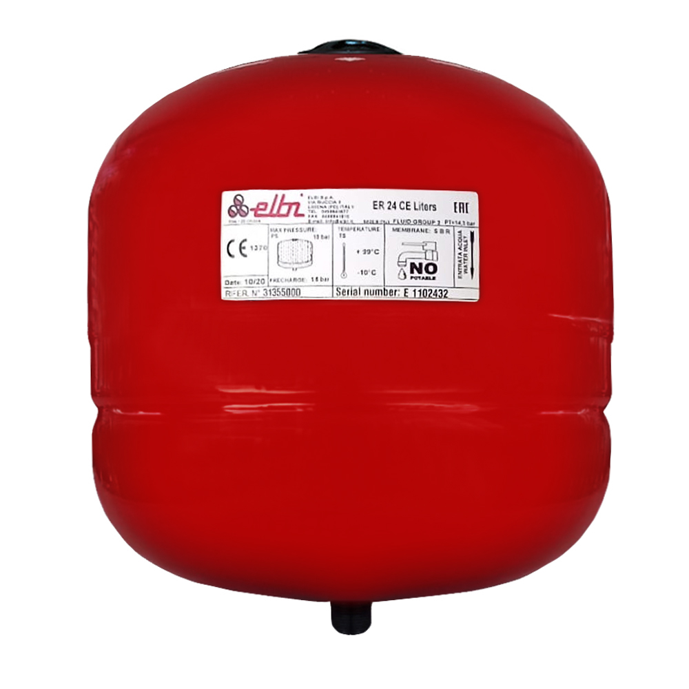 Il vaso di espansione a membrana fissa serve a contenere il liquido al suo interno per poi immetterlo nell’impianto. E’ utilizzato per assorbire la variazione di volume dell’acqua, permettendo il corretto funzionamento di un impianto di riscaldamento, in tutte le sue fasi operative. Il modello Elbi ER 24 CE è ideato e realizzato per essere usato in impianti idrici di riscaldamento. Nell’impianto di riscaldamento chiuso l’acqua non è comprimibile, e nel caso di aumento di temperatura, con conseguente aumento di volume, l’acqua viene assorbita dal vaso di espansione. In caso di discesa di temperatura il cuscinetto d’aria reimmette l’acqua nel sistema.