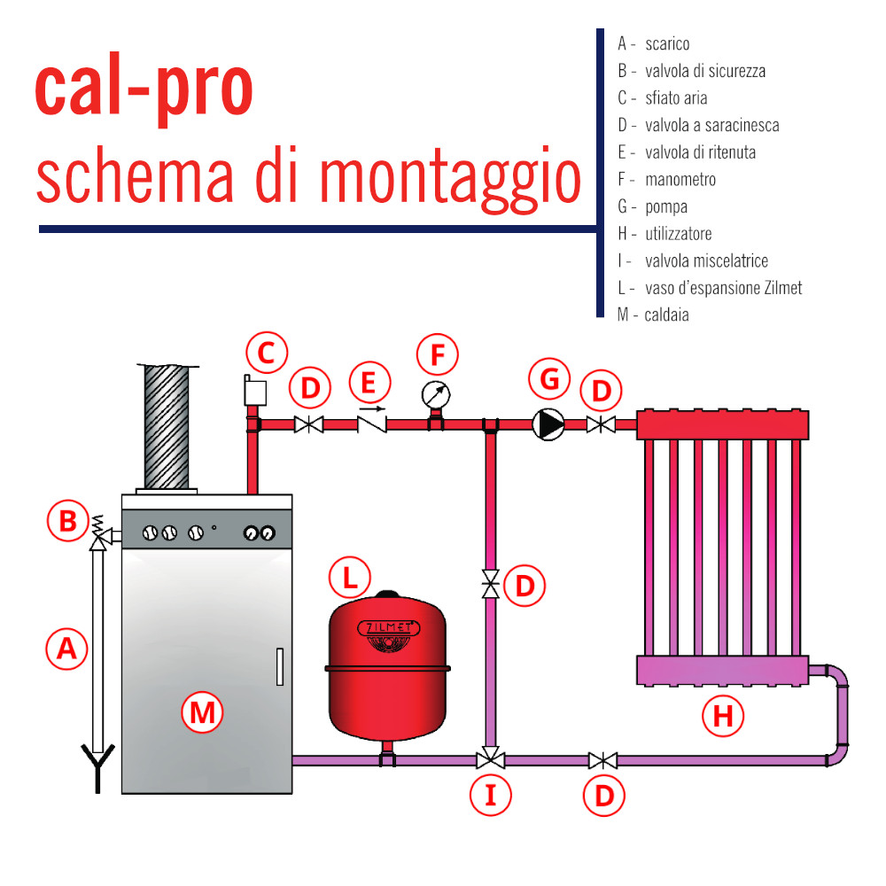 Il vaso termico di espansione CAL PRO Zilmet è un componente utilizzato negli impianti di riscaldamento chiusi. Questo serve per contenere il liquido al suo interno, per poi immetterlo nell’impianto. E’ utilizzato per assorbire la variazione di volume dell’acqua, permettendo il corretto funzionamento dell’impianto di riscaldamento. L’ampia gamma disponibile soddisfa le esigenze di impianti di diverse dimensioni. Il modello CAL PRO 24 è ideato e realizzato per essere usato in impianti idrici di riscaldamento. Nell’impianto di riscaldamento chiuso l’acqua non è comprimibile e nel caso di aumento di temperatura, con conseguente aumento di volume, l’acqua viene assorbita dal vaso di espansione. Mentre se vi è una diminuzione di temperatura, il cuscinetto d’aria reimmette l’acqua nel sistema, consentendo di contenere l’aumento di pressione del sistema.
