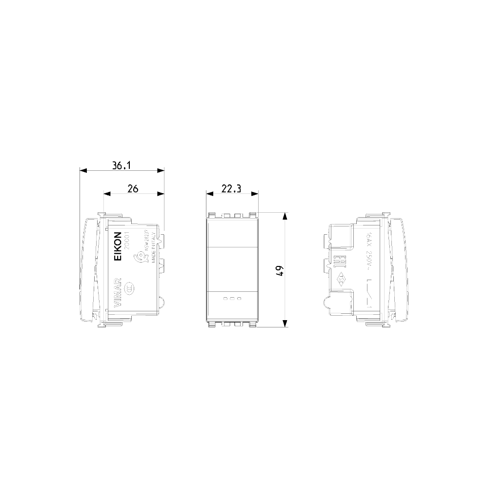 Il dispositivo assiale illuminabile Eikon presenta un’unità di segnalazione dello stato del carico e per l’individuazione dell’interruttore al buio. L’interruttore ha una tensione nominale di 250V e una corrente nominale di 16AX. Il movimento del basculante/assiale è bilanciato e silenzioso. Ha un grado di protezione IP40. E’ realizzato con materiale termoplastico e si presenta con una piacevole colorazione bianca con superficie opaca. La sua installazione prevede un montaggio ad incasso, con morsetto a vite. In aggiunta l’interruttore unipolare, è conforme alla normativa Direttiva BT, Norma 60669-1. Per maggiori informazioni in merito, consultare il documento in allegato.