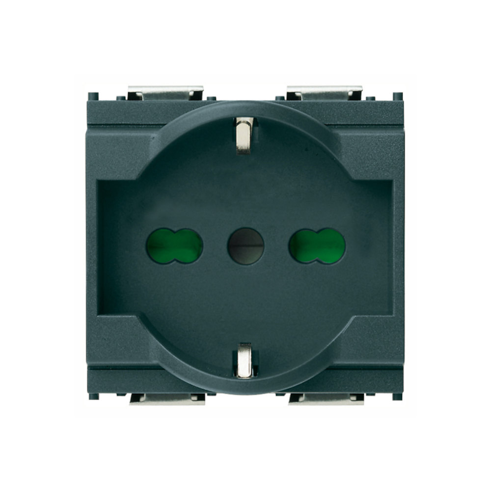 La Presa 2P+T 16A Universale è un dispositivo universale standard italiano IP40, utilizzato per la commutazione di domestici, garantendo la massima compatibilità con vari elettrodomestici e dispositivi. Presenta 2 poli più la messa a terra. La presa è progettata con materiale termoplastico, il quale vanta un’elevata resistenza e garantisce una lunga durata nel tempo al dispositivo. Inoltre è realizzata con una piacevole colorazione grigia, con superficie opaca.