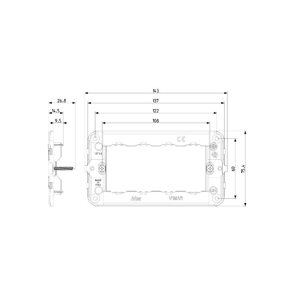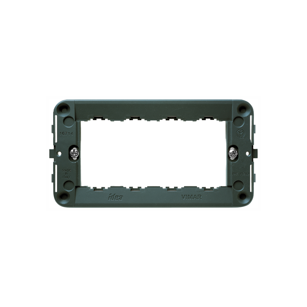 Il Supporto 4M+Viti Grigio Idea Vimar per scatole rettangolari è l’elemento essenziale per il montaggio preciso e sicuro di interruttori, prese e deviatori.
