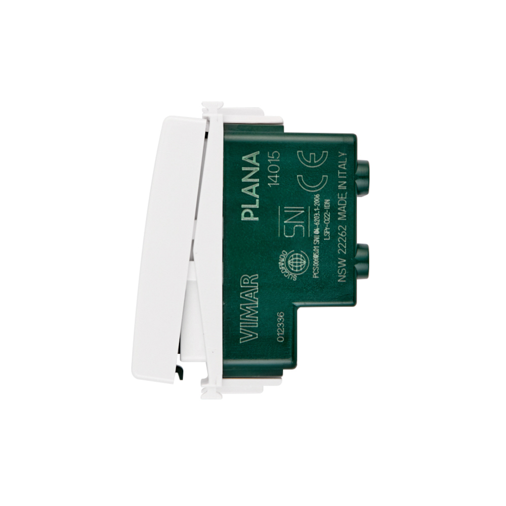 Superficie lucida e in colore bianco, il quale rende il prodotto elegante e lineare; inoltre l’interruttore Vimar Plana è realizzato in plastica resistente; presenta un grado di protezione IP40.