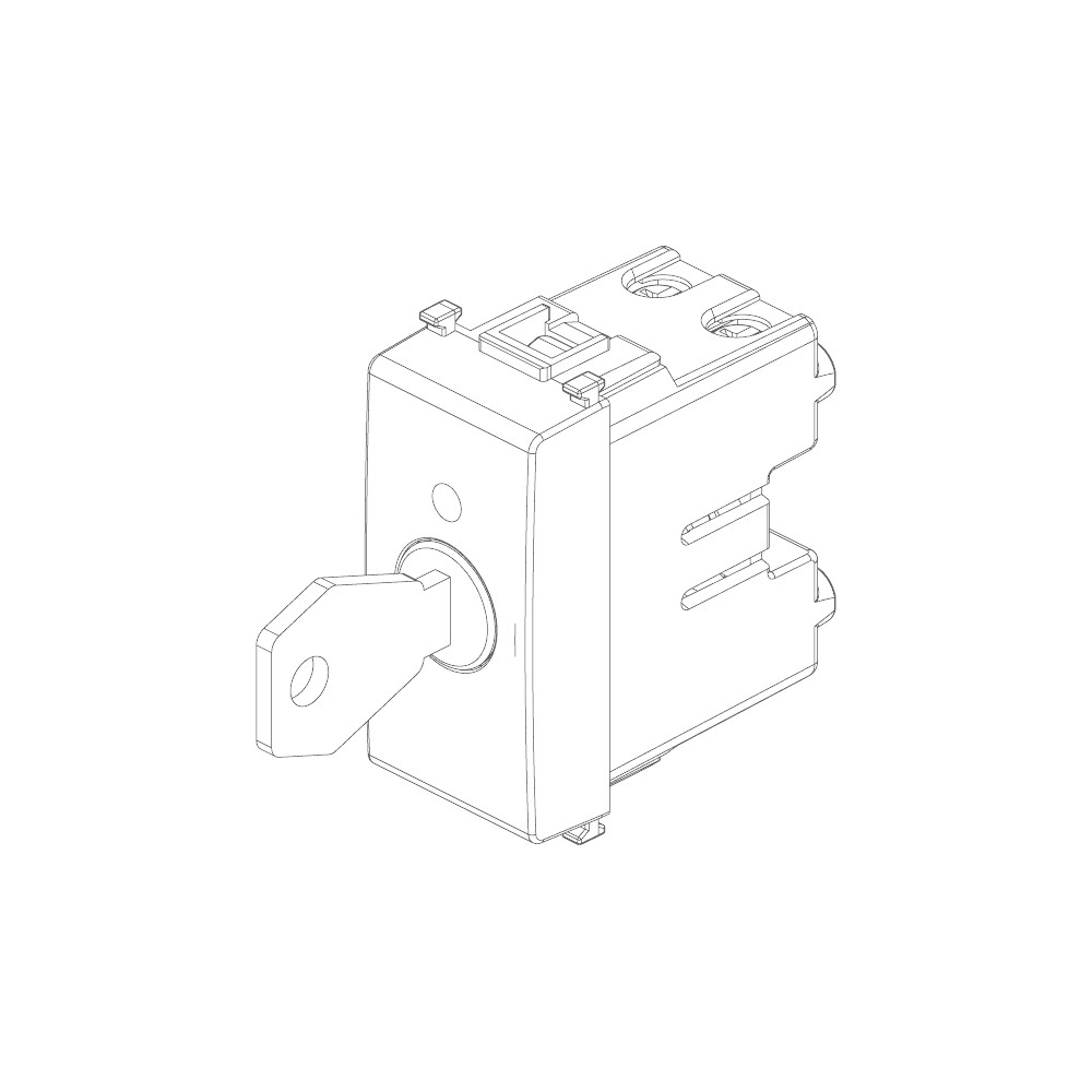Interruttore bianco a 2 poli di Vimar Plana a chiave estraibile solo in posizione spento, viene utilizzato come dispositivo di sicurezza per evitare accensioni indesiderate.