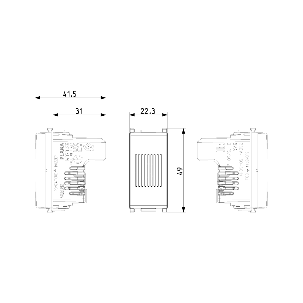 Suoneria Ronzatore bianco Plana Vimar è un dispositivo acustico progettato per offrire avvisi sonori chiari e potenti in ogni ambiente. Ideale per usi domestici e professionali, questo ronzatore è l’opzione perfetta per chi cerca una soluzione efficace e affidabile per le segnalazioni quotidiane. Con il suo elegante design bianco, si adatta facilmente a qualsiasi tipo di arredamento, aggiungendo un tocco di modernità e raffinatezza. Questa suoneria funziona a una tensione di 12V e supporta una frequenza di 50/60Hz, assicurando prestazioni affidabili e continuative. Realizzata con materiali di alta qualità, garantisce resistenza e longevità anche in condizioni di uso frequente. La struttura compatta e solida non solo facilita l’installazione, ma ne migliora anche la resa acustica, offrendo un suono chiaro e potente che è facilmente udibile anche in ambienti rumorosi.