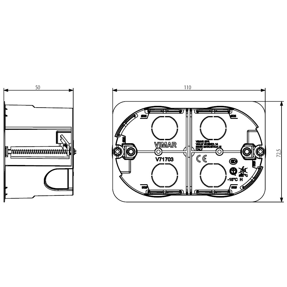 Scatola da incasso 3 moduli per pareti leggere Vimar. Universale, si possono installare tutti i tipi di supporto a 3 posti.