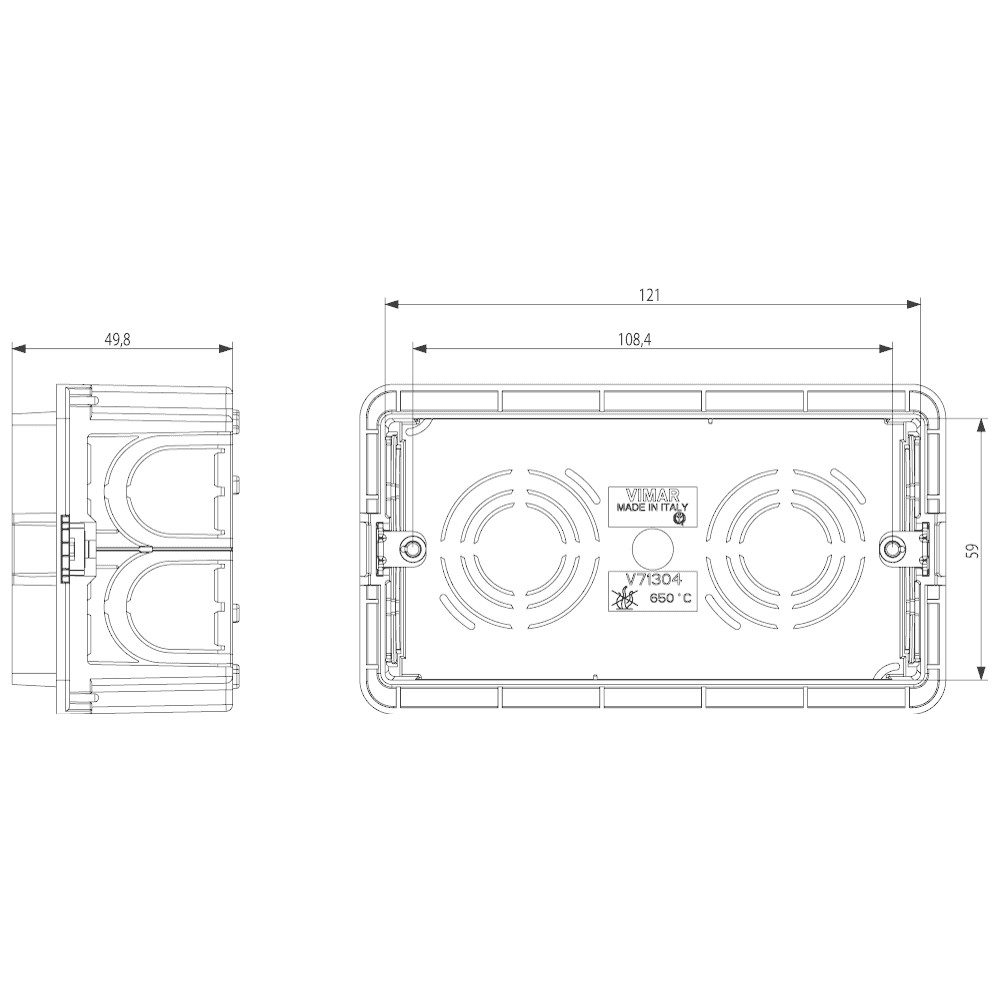 Scatola rettangolare unificata 4 moduli da incasso per pareti in muratura. Scatola universale, si possono installare qualsiasi tipo di telaio o supporto 4 moduli.