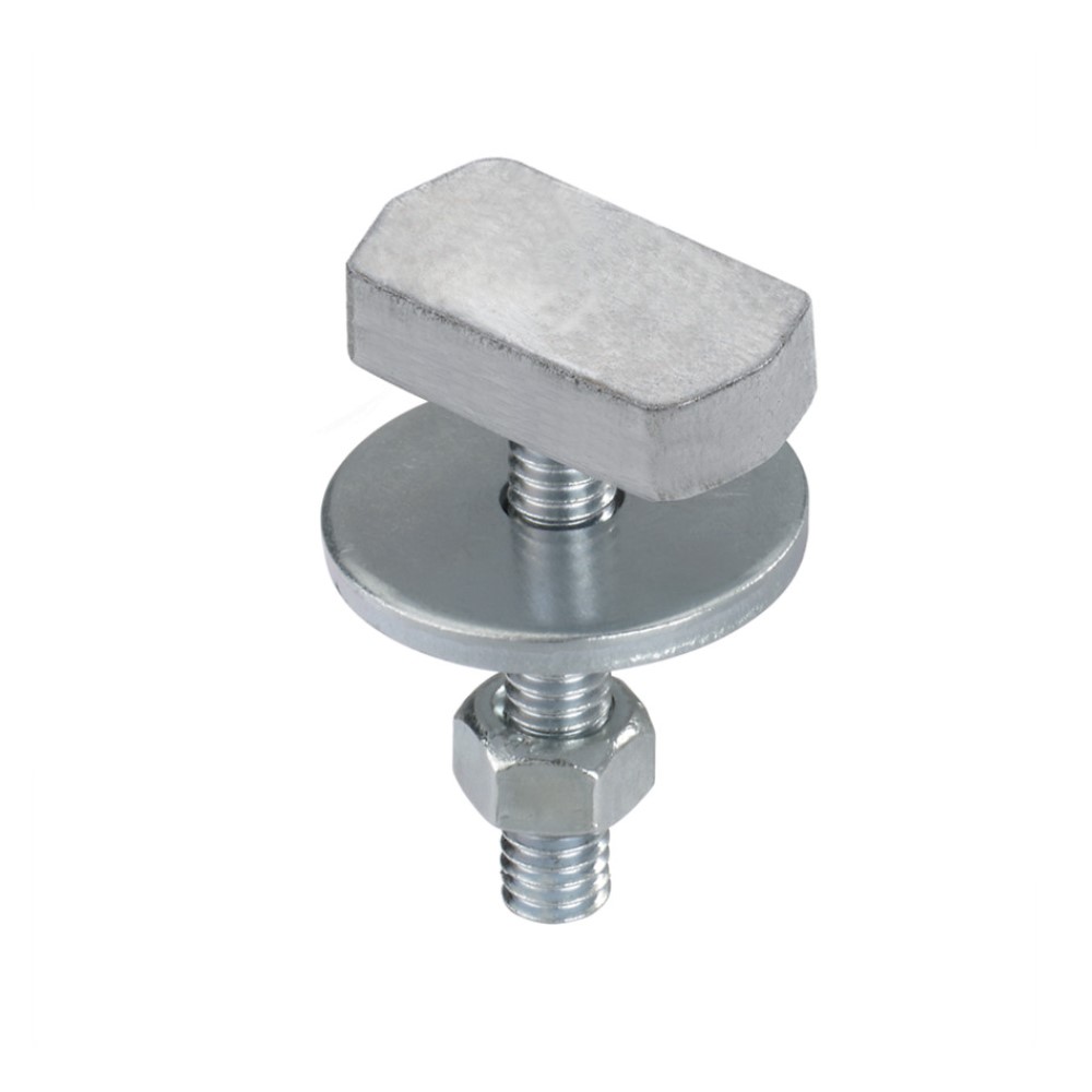 Vite testa a rombo FCS per il fissaggio rapido e semplice in profili MS. Il sistema vite testa a rombo, rosetta e dado preassemblato consente una rapida e semplice installazione. L’inserimento laterale della vite testa a martello nel profilo di montaggio consente un facile posizionamento. Adatta per il fissaggio di collari per tubazioni in profili di montaggio MS a inserimento laterale. La vite testa a rombo si può inserire in qualsiasi punto della rotaia anche per applicazioni in retrofit. PROPRIETÀ: Dado a rombo: Acciaio secondo DIN EN 10025. Barra filettata: Acciaio 4.8 secondo DIN 976. Dado esagonale: Acciaio ISO 898-2 Tab. 4 resistenza min. 4. Rosetta: Acciaio secondo DIN EN 10025. Zincatura elettrolitica, min. 5 µm. Filettatura M8 x 30 mm di lunghezza.